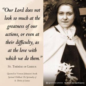 “Holy Trinity, God the Father, God the Son, and God the Holy Ghost, I thank Thee for all the blessings and favors Thou hast showered upon the soul of Thy servant Theresa of the Child Jesus, during the twenty-four years she spent here on earth, and in consideration of the merits of this Thy most beloved Saint, I beseech Thee to grant me this favor (state your petition), if it is in accordance with Thy most Holy Will and is not an obstacle to my salvation.”