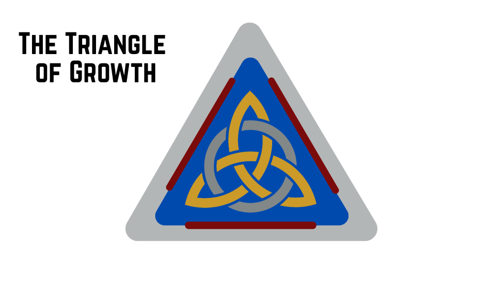 Trinitarian Triangle: The Triangle of Growth image features a yellow Trinitarian triangle at its center, representing the Holy Trinity—Father, Son, and Holy Spirit—in perfect unity. Its yellow hue reflects the radiant glory and divine light of God, inviting the soul into His eternal life.
