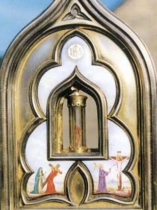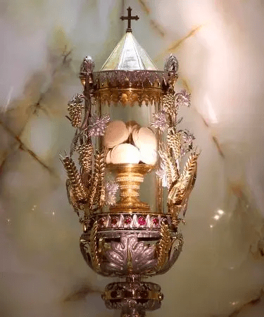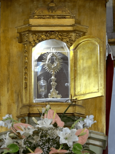 The stained cloth was preserved as a relic and became an object of veneration. Despite the centuries that followed, including periods of turmoil like the French Revolution, the relic remained intact and was eventually sealed in a crystal tube with golden rings and placed in a special ostensorium. Even today, it is solemnly exposed to the faithful each Easter Monday in the parish church of Blanot, as a powerful reminder of Christ’s living presence in the Most Holy Eucharist.